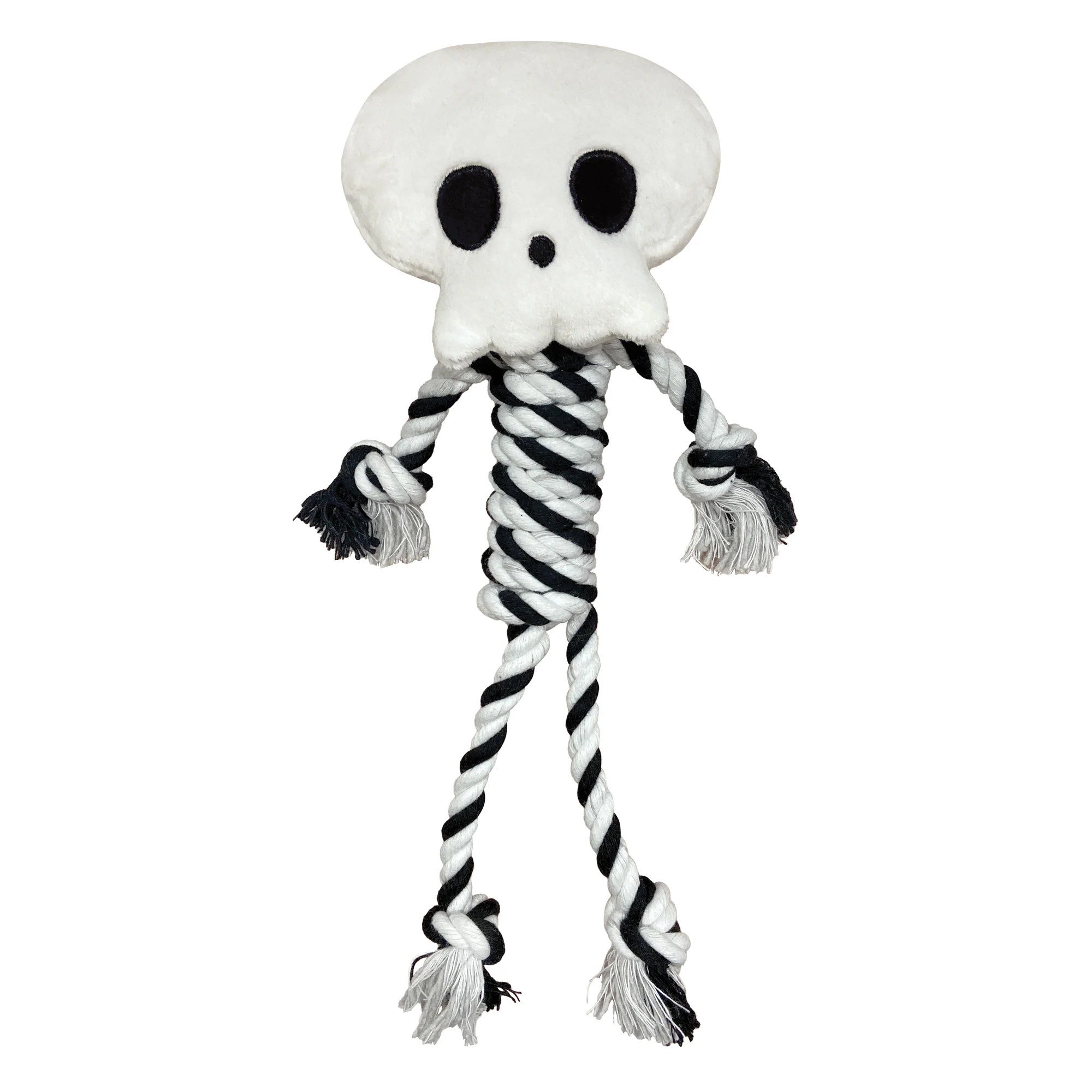 • These SPOOKY toys are made with cotton rope arms, legs and thick twisted bodies. The cotton rope helps clean dogs' teeth as they chew! Each toy features a plush head with a hidden squeaker for added engagement. Perfect for small to medium breeds.