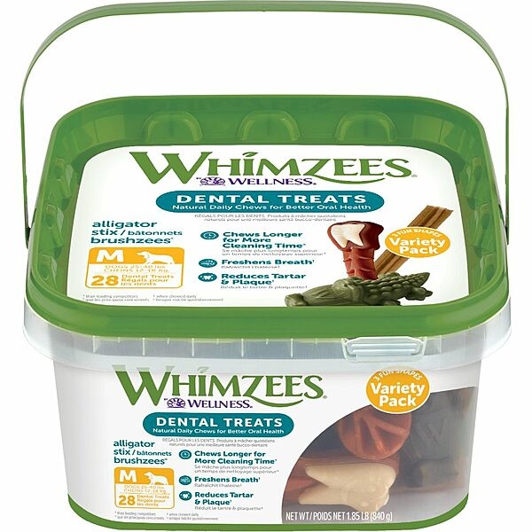 Give your dog one Whimzees per day and you're giving them a fun, all natural way to help clean teeth, freshen breath, and reduce plaque and tartar - all while they chew! These treats clean two times better than a leading competitor, and deliver three times longer chew time. A longer chew time means a longer cleaning time - all to support your dog's dental health. You brush daily, your dog should too!